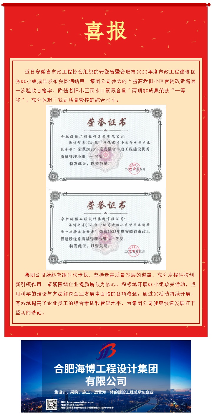 BANDAO半岛体育·(中国)官方网站集团获安徽省市政工程建设QC小组成果一等奖